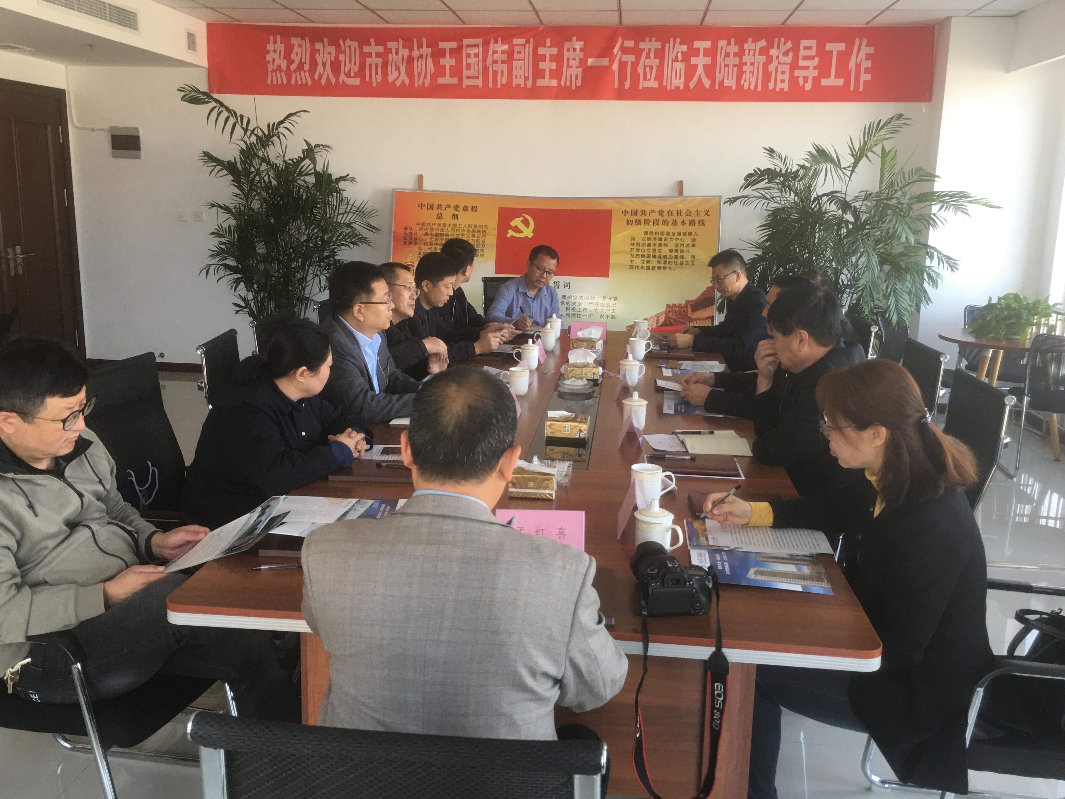 10月28日上午,市政協(xié)副主席王國偉帶領(lǐng)部分政協(xié)委員和機關(guān)干部一行10余人蒞臨山東天陸新公司走訪調(diào)研。